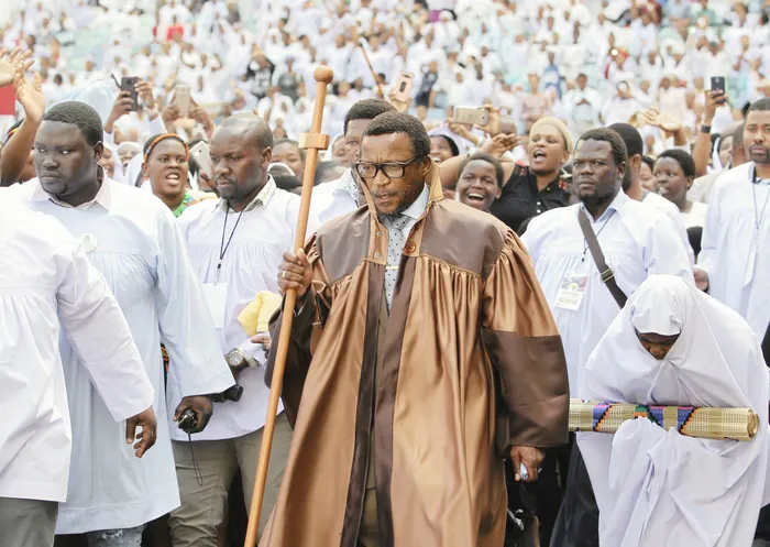 UMHOLI wakwaShembe eBuhleni, uMduduzi ‘Nyazilwezulu’ Shembe, ngesikhathi esemgubheni woMkhosi weLembe eThekwini. Isithombe: Gcina Ndwalane / African News Agency (ANA) UMHOLI wakwaShembe eBuhleni, uMduduzi ‘Nyazilwezulu’ Shembe, ngesikhathi esemgubheni woMkhosi weLembe eThekwini. Isithombe: Gcina Ndwalane / African News Agency (ANA)