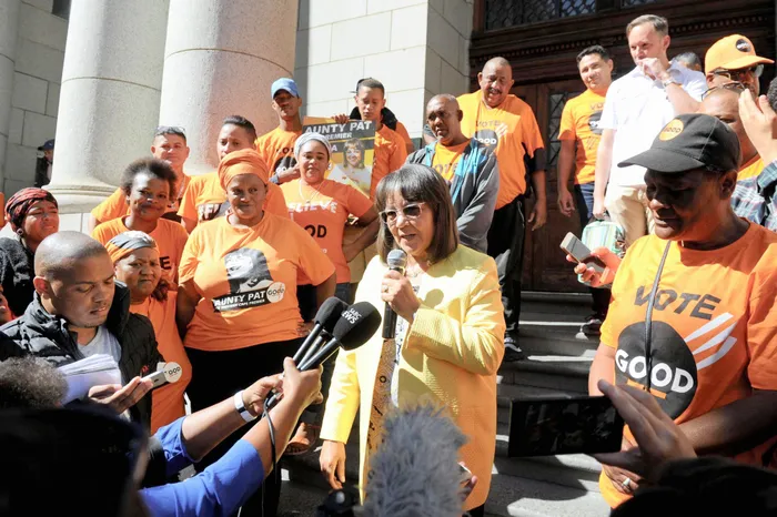 UNKK Patricia de Lille weqembu iGood umangalele iDA ngokuqamba amanga ngokuthi yamxosha, lapha uthathwe nabalandeli bakhe ngaphandle kweNkantolo eNkulu yaseWestern Cape UNKK Patricia de Lille weqembu iGood umangalele iDA ngokuqamba amanga ngokuthi yamxosha, lapha uthathwe nabalandeli bakhe ngaphandle kweNkantolo eNkulu yaseWestern Cape