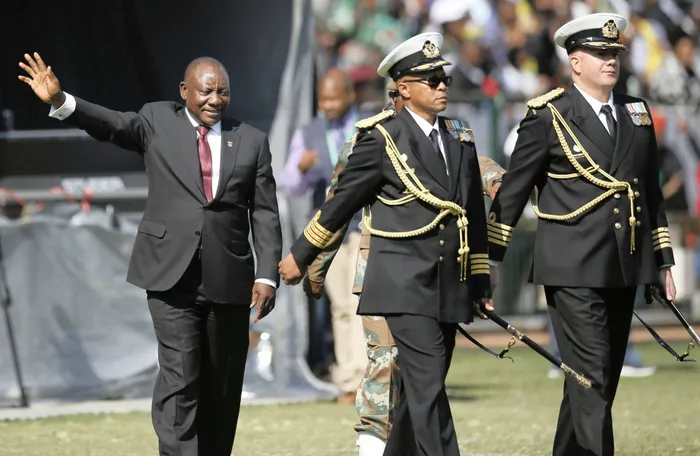 UMENGAMELI waseNingizimu Afrika uCyril Ramaphosa ebingelela abantu ngemuva kokufungiswa ukuba wumengameli eLoftus Versveld Stadium ePitoli izolo Isithombe: Siphiwe Sibeko/Pool Photo via AP UMENGAMELI waseNingizimu Afrika uCyril Ramaphosa ebingelela abantu ngemuva kokufungiswa ukuba wumengameli eLoftus Versveld Stadium ePitoli izolo Isithombe: Siphiwe Sibeko/Pool Photo via AP