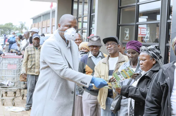 UNGQONGQOSHE wezokuBusa ngokuBambisana neziNdaba zoMdabu KwaZulu-Natal, uMnuz Sipho Hlomuka, useqinise umkhankaso wakhe wokuhambisa amathangi amanzi emphakathini. Lapha uthathwe enika abantu baseXobho amapheshana aqwashisa ngegciwane iCorona UNGQONGQOSHE wezokuBusa ngokuBambisana neziNdaba zoMdabu KwaZulu-Natal, uMnuz Sipho Hlomuka, useqinise umkhankaso wakhe wokuhambisa amathangi amanzi emphakathini. Lapha uthathwe enika abantu baseXobho amapheshana aqwashisa ngegciwane iCorona