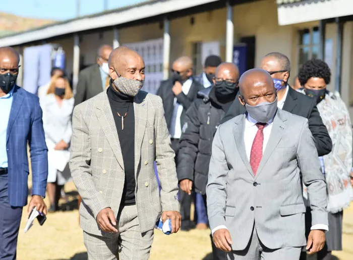 Kwesobunxele isikhulu esiphezulu kwiNelson Mandela Foundation uMnuz Sello Hatang noNdunankulu waKwaZulu-Natal uMnuz Sihle Zikalala ngesikhathi bememezela izinhlelo zokusiza isikole iLangalakhe High, eMgungundlovu Kwesobunxele isikhulu esiphezulu kwiNelson Mandela Foundation uMnuz Sello Hatang noNdunankulu waKwaZulu-Natal uMnuz Sihle Zikalala ngesikhathi bememezela izinhlelo zokusiza isikole iLangalakhe High, eMgungundlovu