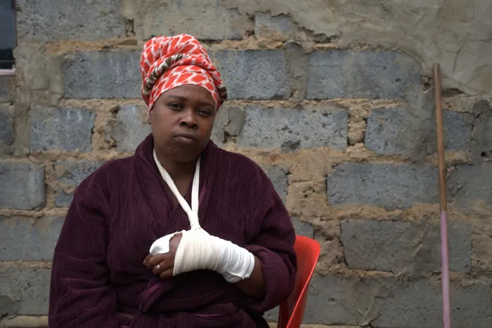 UFUNA ubulungiswa uNkk Vinolia Mkhize (33) kulandela ukuhlaselwa amaphoyisa abebalelwa ku-11 amshaya, athatha imali nokhiye wemoto yakhe emuva kokungena kwakhe ngezicabha ezofuna isibhamu. Isithombe: Mcebo Mpungose