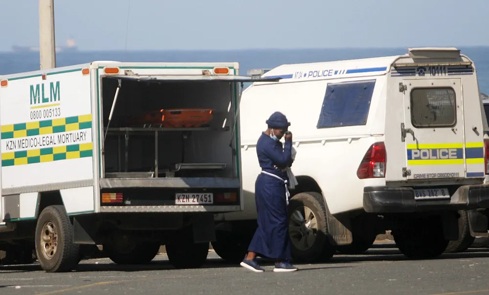Abeme izixongololo, ebheke isidumbu sikaMnuz Bhekumusa Hlophe ( 45), ebesilele enhlabathini yolwandle, simbozwe ngengubo yokulala. Eduze kwezimoto abefike ngazo ebhishi amakholwa, bekunezingubo zokulala obekukhomba ukuthi abezisonge ngazo.