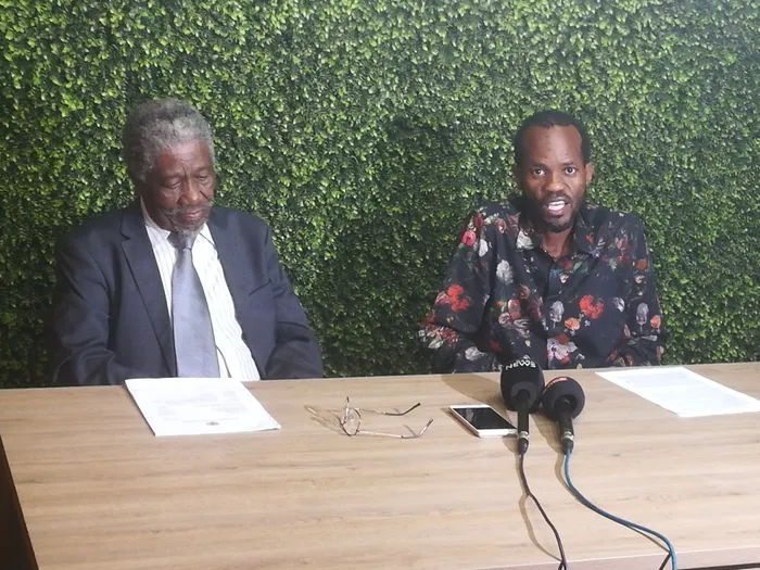 ISETHENJWA samaNazaretha, uMshumayeli Chancey Sibisi noMnuz Nkululeko Mthethwa, okhulumela umholi wamaNazaretha iNkosi Phinda Shembe, uKukhanyakwelanga Isithombe: THOKOZANI NDLOVU