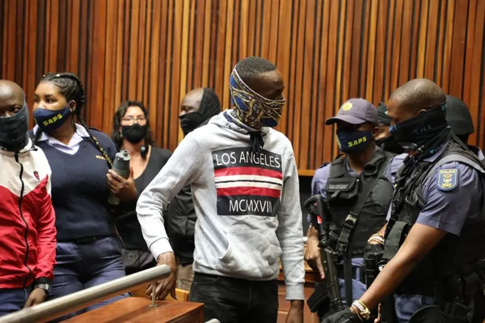 BEBEQASHWE ngelokhozi ngesikhathi becele enkantolo izolo abasolwa ngokubulala owayengunozinti we-Orlando Pirates neBafana Bafana uSenzo Meyiwa, namuhla okuphela iminyaka eyisikhombisa abulawa eVosloorus eGoli Isithombe: Timothy Bernard/ African News Agency (ANA)