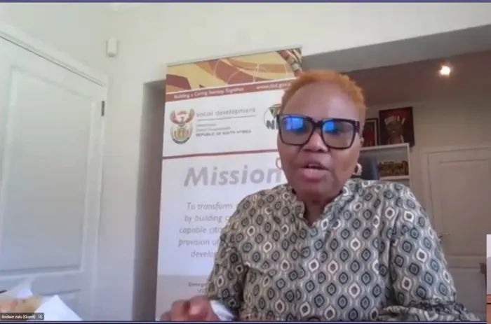Lokhu kushiwo wuNgqongqoshe wezokuThuthukiswa koMphakathi kuleli, uNkk Lindiwe Zulu, ngesikhathi ethula ubufakazi esigcawini seKhomishini yamaLungelo aBantu ephenya ngezibhelu zangoJulayi ezadlula nemiphefumulo yabantu abangu-342.