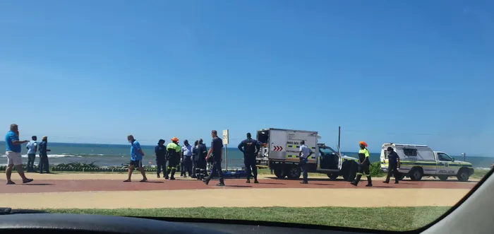 AMAPHOYISA nethimba labatakuli bethatha izidumbu zabafana ababili abaminze ebhishi eLaguna, eThekwini Isithombe: Sithunyelwe