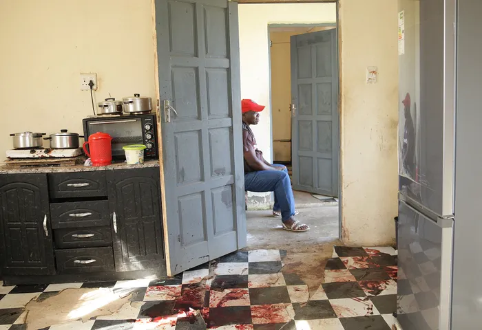 BEKUSAGCWELE igazi phansi okukholakala ukuthi ngelikamsolwa okuthiwa ugencwe ngesikhathi ezama ukubhudubeza isalukazi, eSonkombo, eNdwedwe, ngoLwesihlanu ebusuku Isithombe: BONGANI MBATHA/ANA