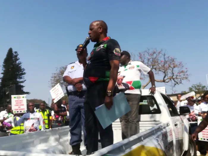 ibisuka eMpangeni Central Park yabheka esiteshini samaphoyisa lapho behambise khona uhlu lwezikhalazo emaphoyiseni, befuna uNgqongqoshe wamaPhoyisa, uMnuz Bheki Cele ukuthi ahlinzeke ngezinsiza ezengeziwe eziteshini zamaphoyisa ezakhele uMpangeni.