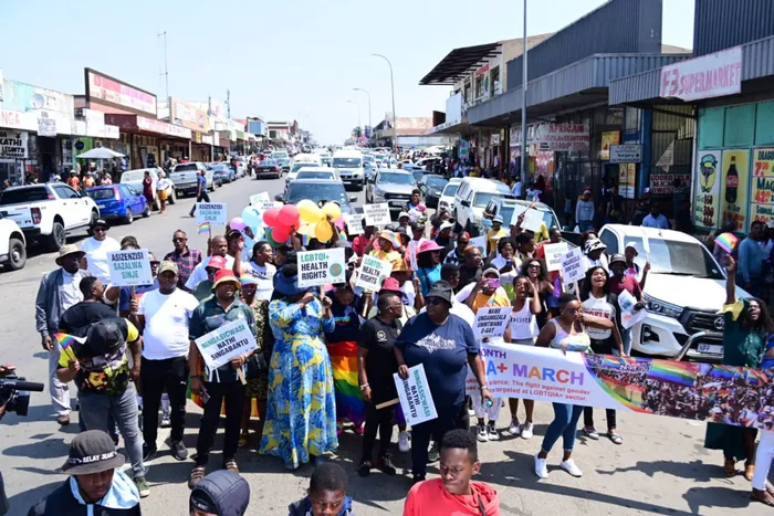 I-LGBTQI Pride Parade ebibanjwe wuMnyango wezeMpilo KwaZulu-Natal, ubambisene nenhlangano elwelwa amalungelo abantu abathandana nobulili obufanayo (i-LGBTQI+ Community), isithombe: SITHUNYELWE
