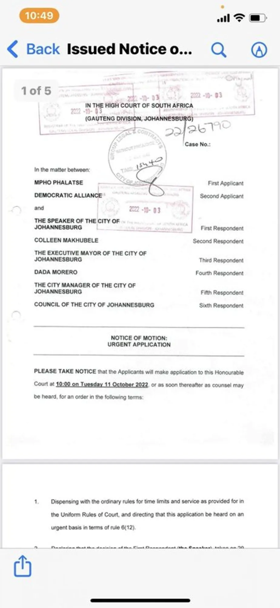 OBEYIMEYA yoMkhandlu waseGoli, uDkt Mpho Phalatse, uwafake izolo, eNkantolo eNkulu yaseGoli, amaphepha ahlose ngawo ukuthi umhlangano omgudluze esikhundleni ngeledlule, uthathwe njengowawungekho emthethweni.