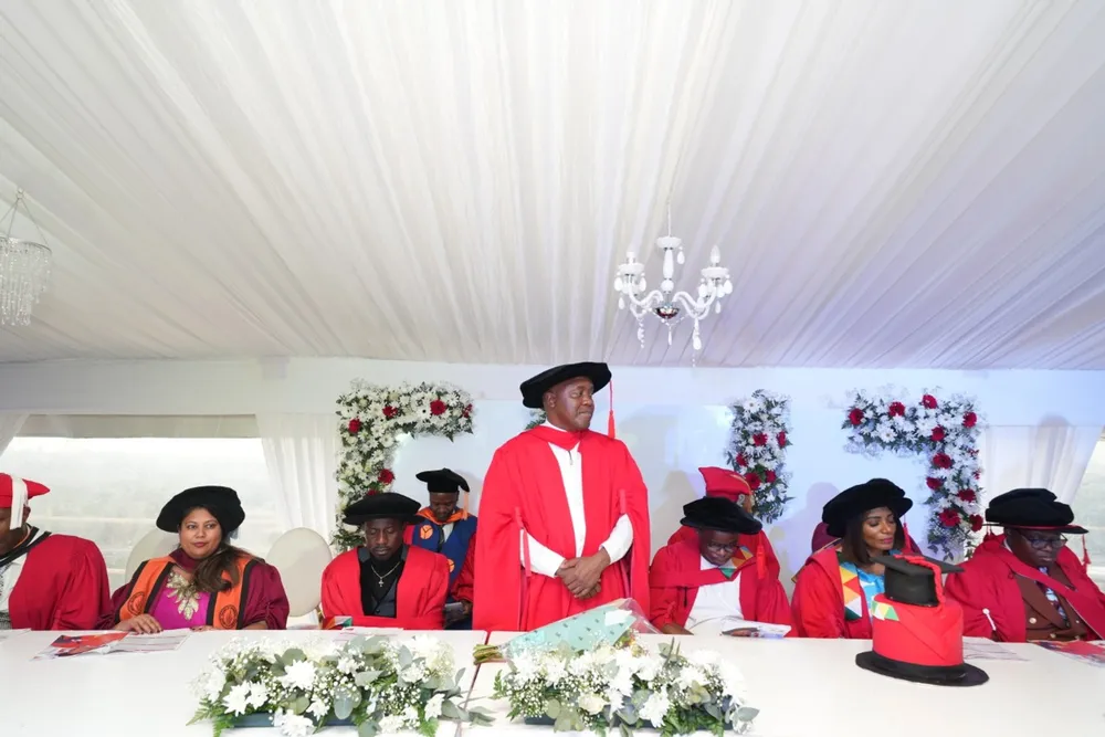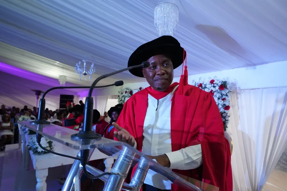 KUBE wusuku lwenjabulo uDkt Thulani Mdadane oyiNhloko yoMnyango wokuThuthukiswa kweNgqalasizinda eGauteng ebenze umcimbi wokwethweswa iziqu zobudokotela azithola e-UKZN, ekhaya eDassenhoek ngaseMariannhill Isithombe: SITHUNYELWE
