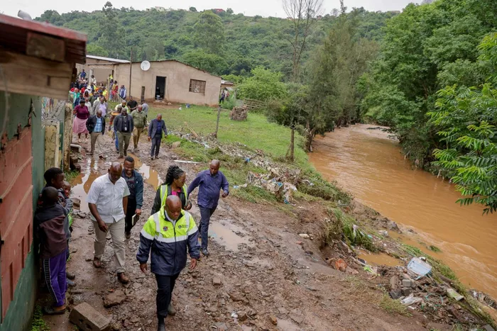 UNGQONGQOSHE woMnyango wokuBusa ngokuBambisana neziNdaba zoMdabu eKZN uMnuz Sihle Zikalala ehlola umonakala odalwe umfula uMsunduzi Isithombe: Sithunyelwe