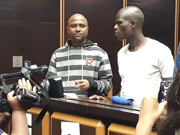 KWESOKUNXELE ummangalelwa wokuqala uBhekukwazi Mdweshu nommanglelwa wesibili uKhayelihle Mbuthuma beseNkantolo eNkulu eMgungundlovu ngesikhathi kuqulwa icala Isithombe : AFRICAN NEWS AGENCY (ANA)