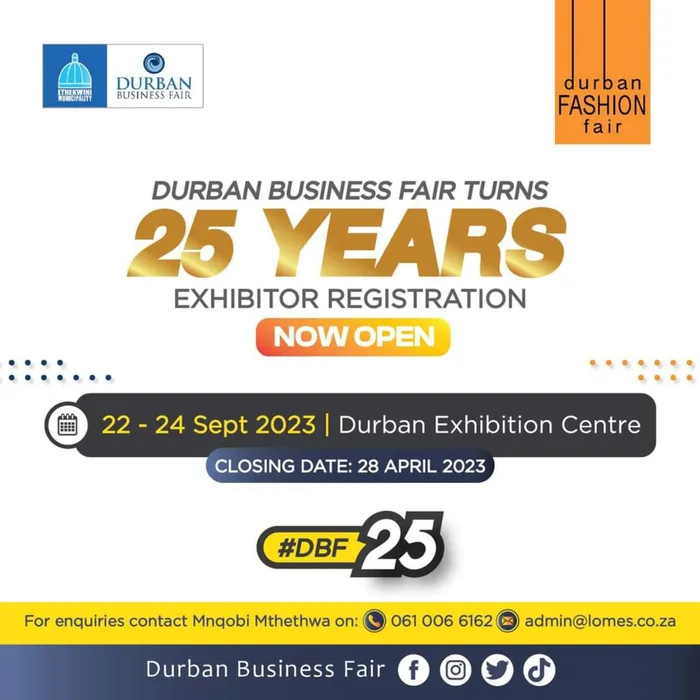 Sekuvuliwe ukubhalisela umbukiso wamabhizinisi wodumo kaMasipala weTheku, iDurban Business fair (DBF) ogubha iminyaka ewu-25. Lo mbukiso wamabhizinisi uzosingathwa kusukela mhlaka 22 kuya ku 24 Septhemba e-Durban Exhibition Centre.