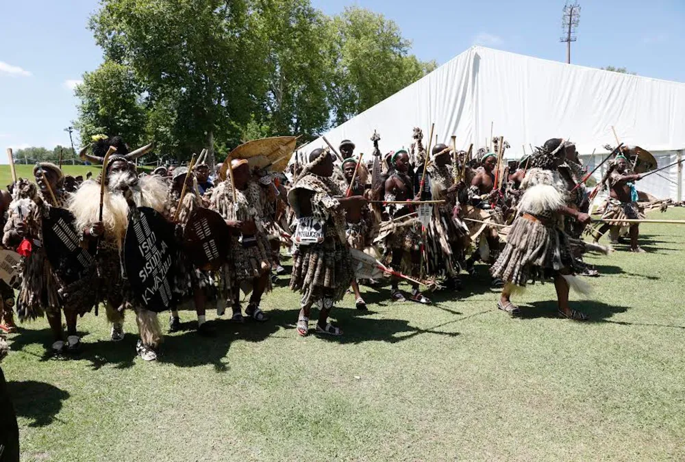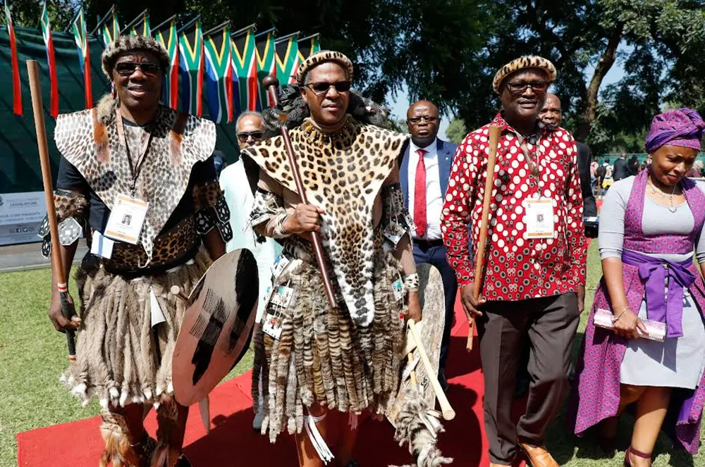 Kuqhamuke nowayengumengameli wezwe uMnuz Jacob Zuma, ezifakele isudi wemukelwa yiPhini likaSomlomo wesiShayamthetho uMnuz Themba Mthembu. UNgqongqoshe wezobuCiko, amaSiko nezemiDlalo uNkk Amanda Bani, ubeswenke ngengubo eveza amahlombe. UNgqongqoshe wezokuBusa ngokuBambisana neziNdaba zoMdabu uNkk Bongi Sithole - Moloi, ubonakale kukhaphethi obomvu eswenke econsa.