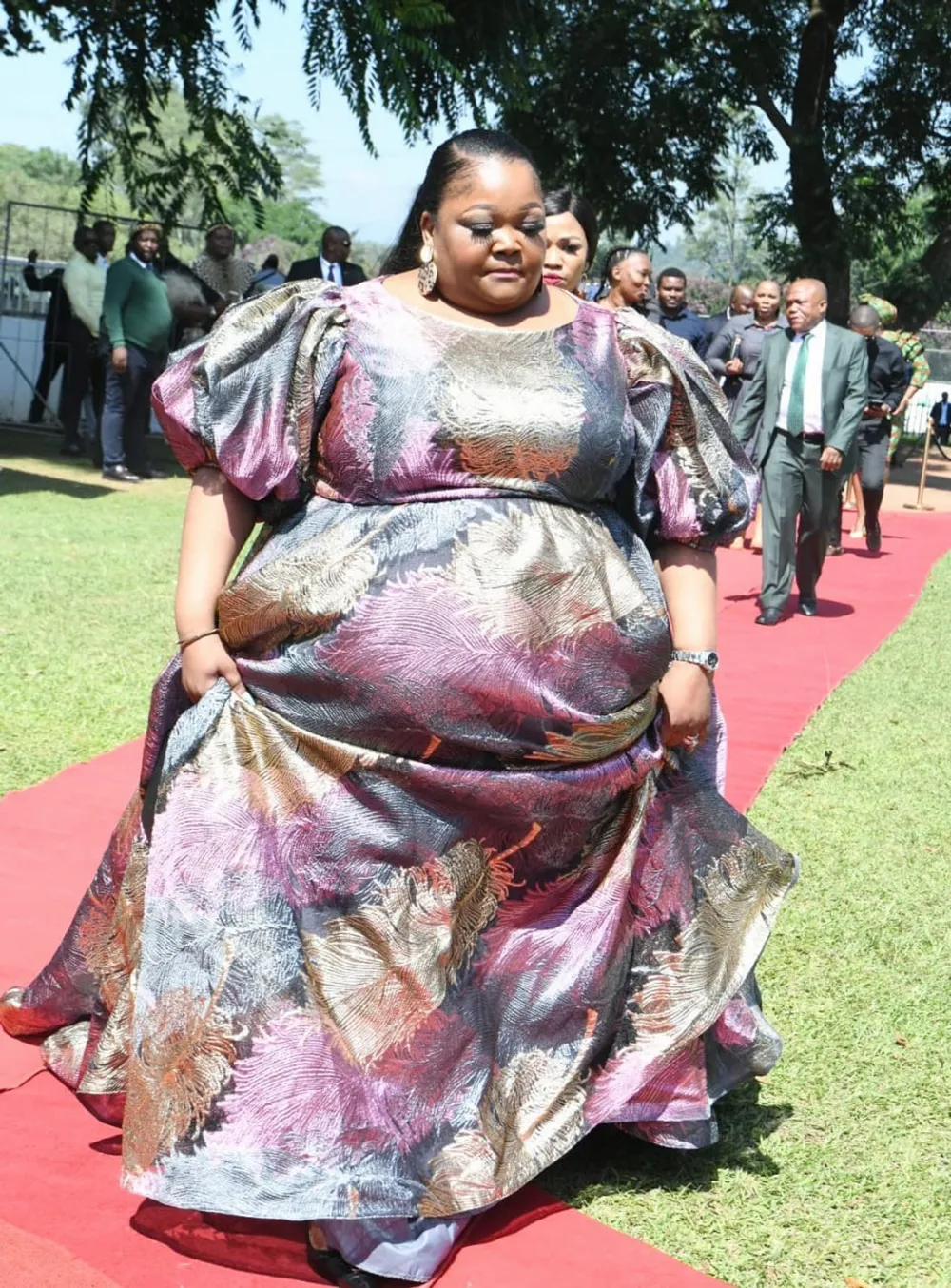 Amalungu esiShayamthetho nezimenywa ezehlukene bezendlalelwe ukhaphethi obomvu, zihamba kuwona zibukisa ngengqephu. Isilo ebesibhekiwe sifike sishaye isudi sase sihenqa ibhande elinqamula emzimbeni elingajwayelekile ukulifaka. UNdlunkulu waso ukaMayisela ubedlubhe ingubo ende ehusha phansi, enobucwebecwebe ebonakala eyiphakamisa egwema ukuyigxoba.