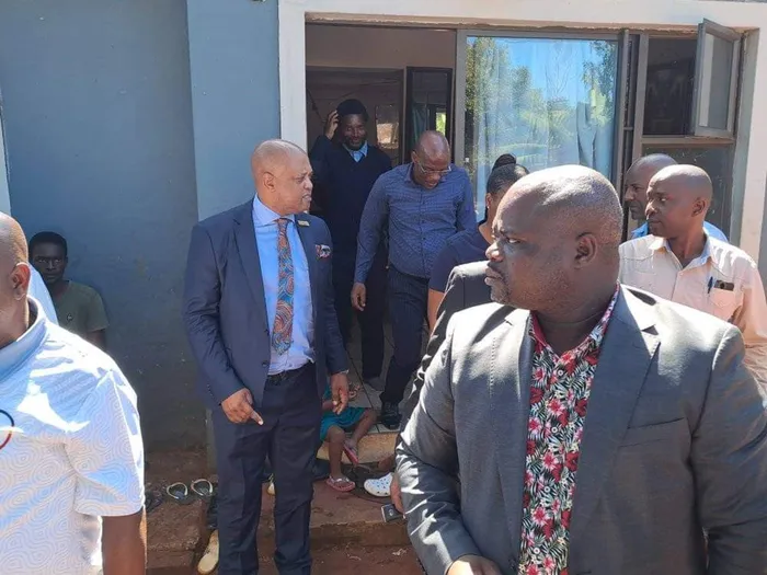 IMEYA yaseMhlathuze uMnuz Xolani Ngwezi nabaholi behamba behlonza umonakalo kulandela isiphepho, lana bebevakashele umndeni odlulelwe yilungu lawo Isithombe: SIHLE MAVUSO/ IOL