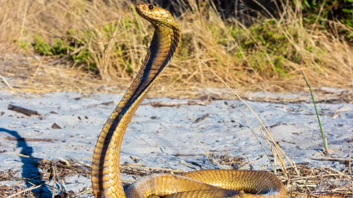 Uma ebheka ngaphansi kwesitulo ukubona ukuthi yini le emhambayo, uzithele phezu koholokoqo lwemfezi ebizwa ngeCape Cobra, kwesinye ebuye ibizwe ngeYellow Cobra.