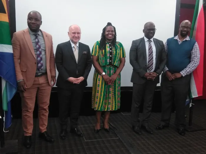 Bekuyinjabulo yodwa ngesikhathi kumenyezelwa amalungiselelo eWorld Business Angels Investment Forum. Esithombeni nguMnuz Thembo Ntuli, Baybars Altuntas, Nkk Sonto Mayise, Mnuz Nhlakanipho Nkontwana noNhlanhla Khumalo Isithombe:Boniswa Mohale