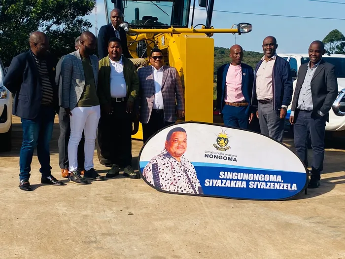 KUSUKELA kwesokunxele nguMnuz Jacob Nsele, uMnuz Snethemba Mbongwa, uMnuz Justice Nkosi, iMeya waKwaNongoma, uMnuz Albert Mncwango, uMnuz Njabulo Dludla, uSomlomo uMntwana uMnuz Bhekinkosi Zulu, uMnuz Mthandeni Zungu, noMnuz Khaya Zulu Isithombe:SITHUNYELWE