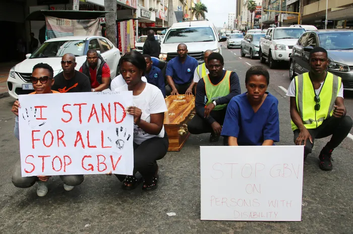 Bebehamba bephethe ibhokisi ngesikhathi bemasha. UNxumalo uthe ibhokisi beliwuphawu lokuthi bayasivala isihlava sokuhlukunyezwa kwabantu abakhubazekile.