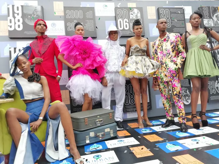 ABASIKI bengqephu bathule izingubo zikanokusho ezizobe zikhangiswa kwiDurban Fashion Fair ezoba ngoSepthemba e-Exhibition Centre. Laba basiki bengqephu bebeyingxenye yomcimbi wokugubha iminyaka engu-25 uMkhandlu weTheku uthuthukisa amabhizinisi amancane eLa Lucia izolo Isithombe: PHINDILE NQUMAKO