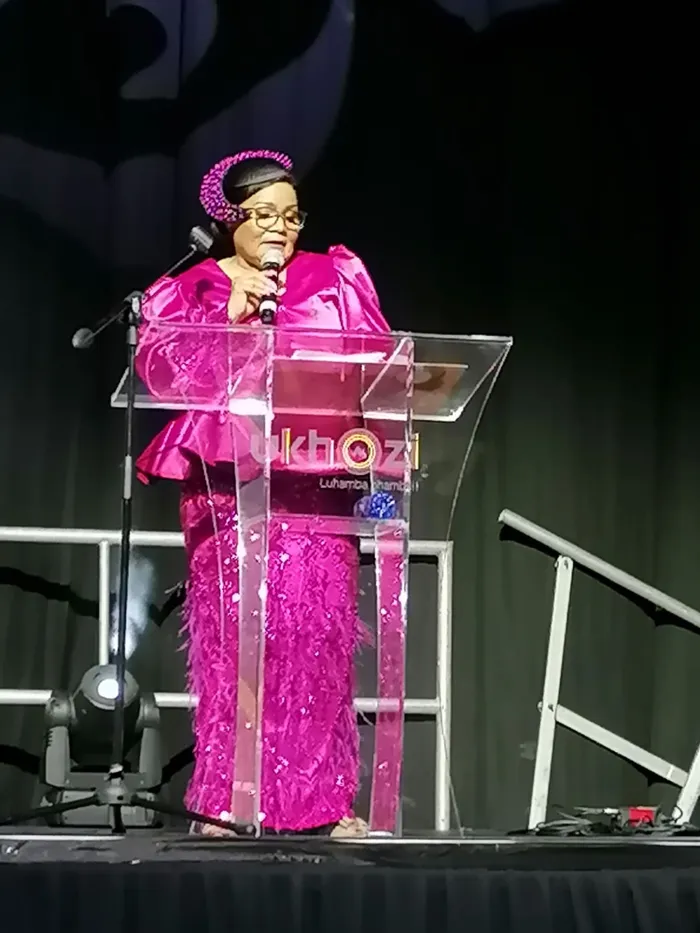 UDudu ‘Lady D’ Khoza, ekhuluma emcimbini i-High Tea noLady D obuse-ICC eThekwini ngoMgqibelo Isithombe: PHINDILE NQUMAKO