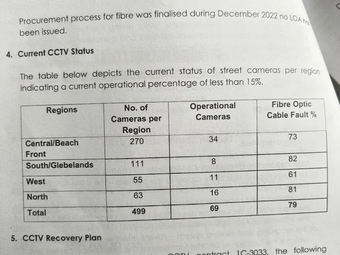 UNksz Sharmaine Sewshanker oyilungu leDA ophinde abeyilunguu leSafety Emergency and Security Cluster uthe kuyichilo ukuthi u-14% kuphela wamakhamera asebenzayo kulawo agade umphakathi bese kuthi agade izikhulu ze-ANC, kube angu-95% asebenzayo.