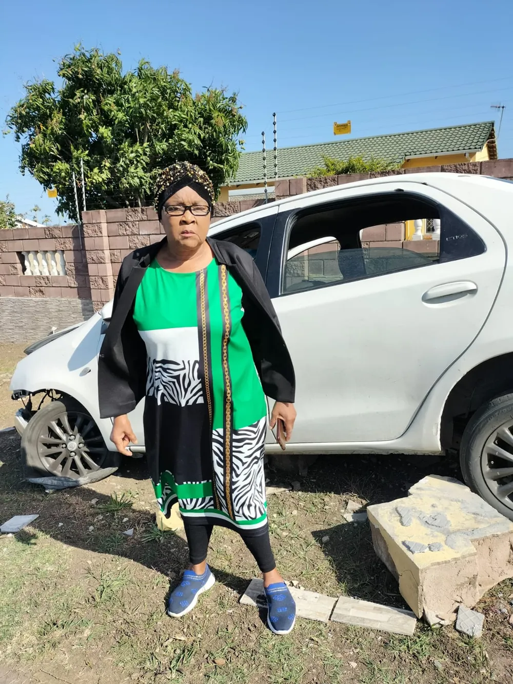 Umnikazi womuzi, uNkk Zodwa Memela, uthe ubezwe ngomsindo imoto ishayisa udonga okubiywe ngalo.