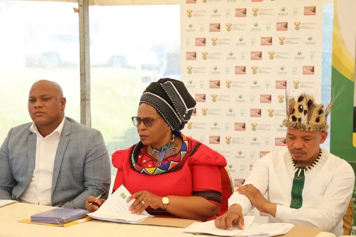 UNGQONGQOSHE wezokuThuthukiswa koMphakathi KwaZulu-Natal, uNkk Nonhlanhla Khoza uthi amakhosi abalulekile ukuqeda udlame olubhekiswe kwabesifazane nezingane. Lapha uthathwe neNkosi Mbuso Praisegod Ngcobo neNkosi Mthoko Cele Isithombe: SITHUNYELWE