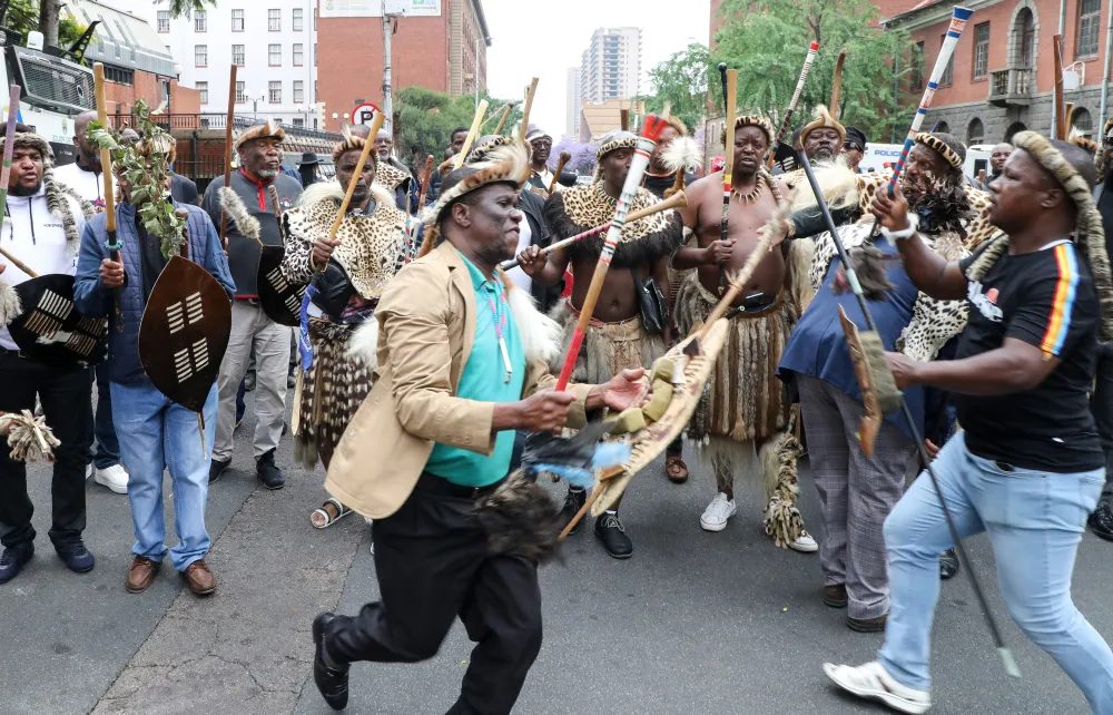 Izinkumbi zamabutho beziviliyela ngaphandle kweNkantolo eNkulu ePitoli, lapho kuthethwa khona icala elithinta umbango wesihlalo sobukhosi bukaZulu, afunge agomela ukuthi azokufa lapho kufa khona iSilo.