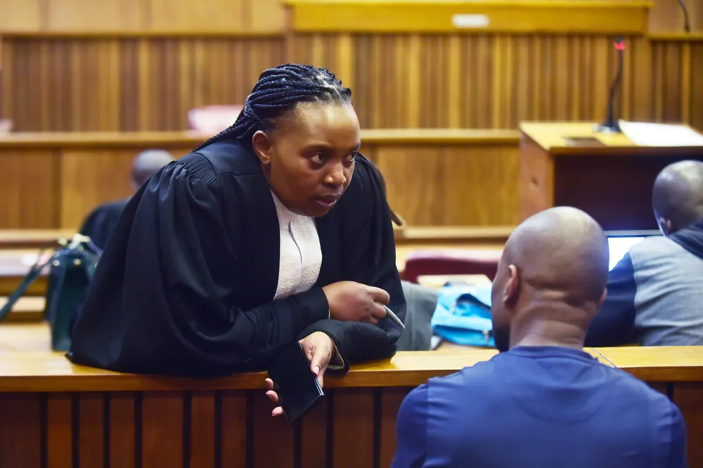 U-ADVOCATE Zandile Mshololo omele ummangalelwa wesihlanu, uMnuz Sifisokuhle Ntuli, ushaya amakhala ngenkulumo eqoshiwe ewubufakazi ecaleni Isithombe: OUPA MOKENA/AFRICAN NEWS AGENCY (ANA)