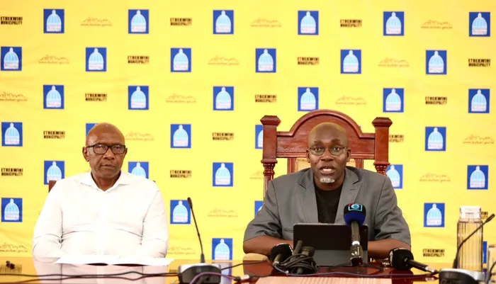 USihlalo weBhodi loMngeni-uThukela Water, u-Adv Vusi Khuzwayo neMeya yeTheku uMnuz Mxolisi Kaunda, bathi iyalungiswa ingqalasizinda yamanzi Isithombe: Sithunyelwe