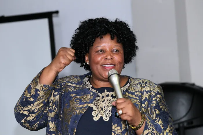 DURBAN: 160216 MEC for Education Peggy Nkonyeni speaks at the SADTU Award ceremony for the top achivers schools principals held at the SADTU House. PICTURE: GCINA NDWALANE