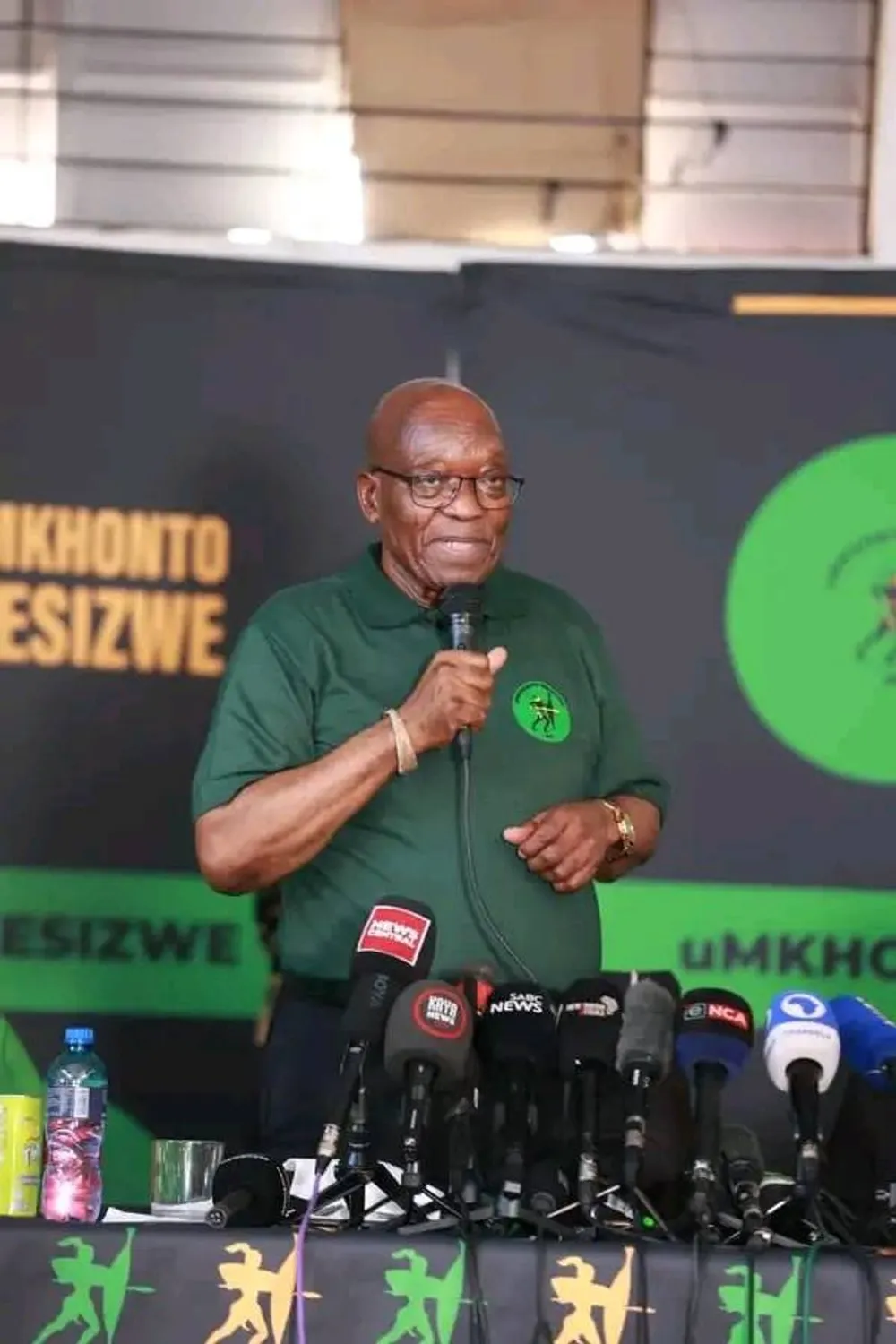 Iqembu uMkhonto weSizwe lethulwe owayengumengameli uJacob Zuma, ngasekupheleni konyaka odlule eSoweto. UZuma akazange ashone ezintangeni, walibeka ngembaba elokuthi ngeke asakhankasela aphinde avotele uKhongolose.