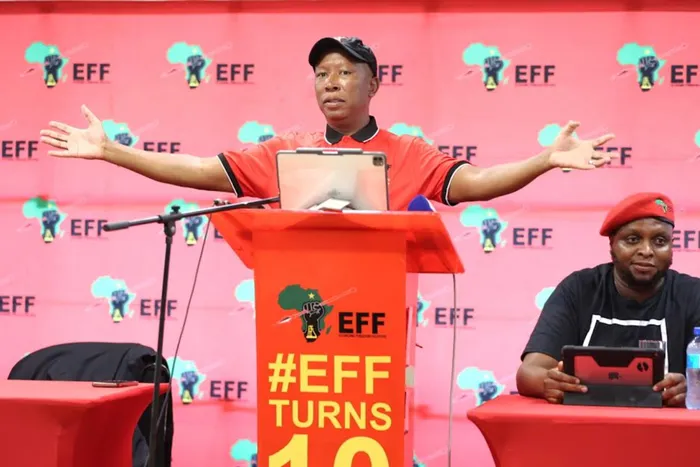 UMHOLI we-EFF uMnuz Julius Malema ekhuluma esithangamini sabezindaba eThekwini Isithombe : SIBONELO NGCOBO/INDEPENDENT MEDIA
