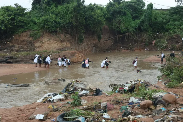 ABAFUNDI baseZwelisha abafunda ezikoleni ezehlukene ePhoenix bewela umfula Isithombe: SIBONELO NGCOBO/INDEPENDENT MEDIA