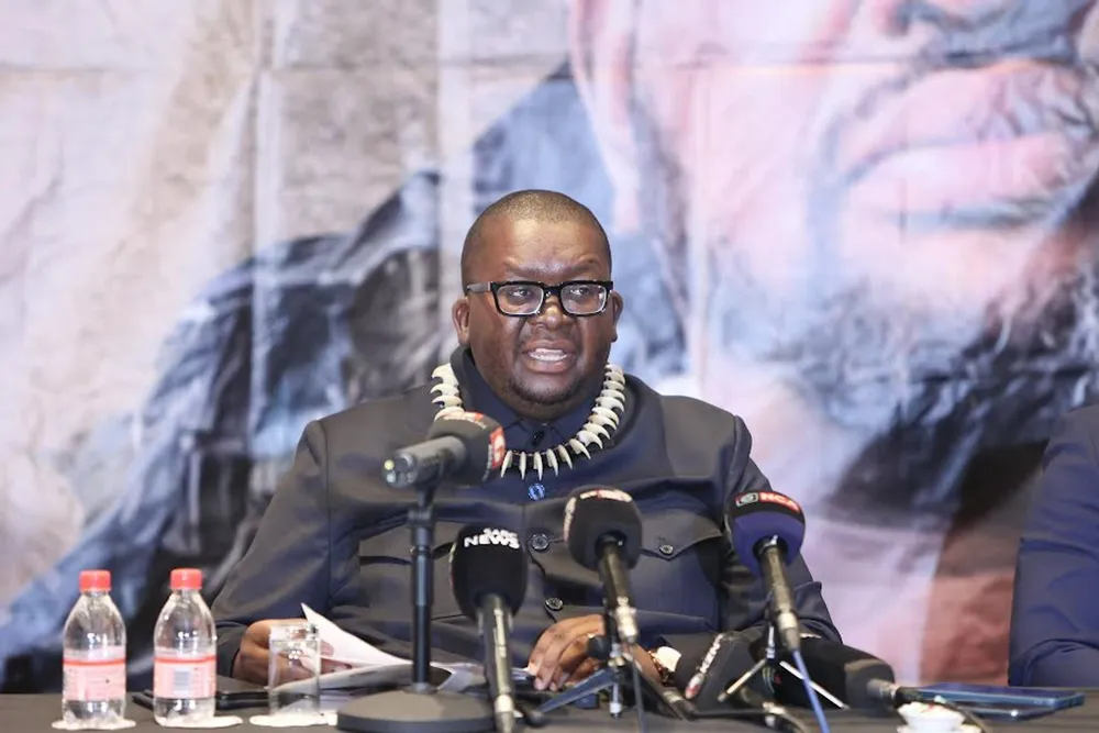 UNDUNANKULU kaZulu uMfundisi Thulasizwe Buthelezi ekhuluma nabezindaba ekakwe iPhini lakhe Inkosi Phathizwe Chiliza (kwesokunxele) noMntwana Bambindlovu ongumnawabo weSilo uMisuzulu kaZwelithini Isithombe: SIBONELO NGCOBO/INDEPENDENT MEDIA