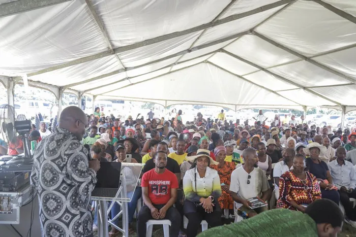 IMEYA yeTheku, uMnuz Mxolisi Kaunda, ikhuluma nomphakathi waseBuffelsdraai ngezinhlelo zokuwuthuthukisa Isithombe: SITHUNYELWE