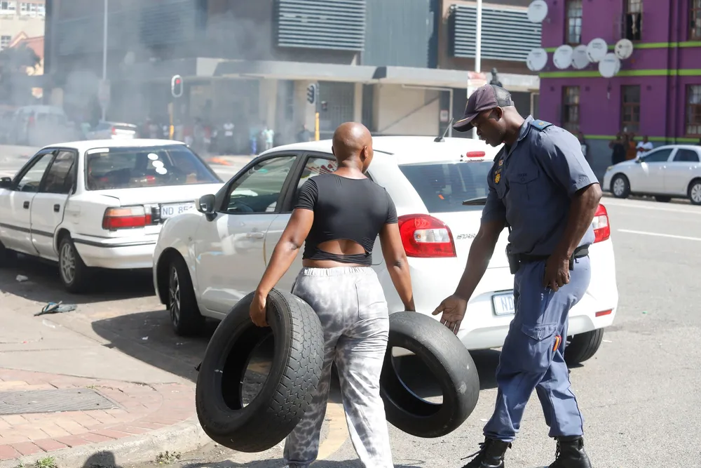 ABESIFAZANE basehostela laseThokoza bavale umgwaqo ngamathayi avuthayo betelekela ugesi Isithombe: Doctor Ngcobo/INDEPENDENT MEDIA