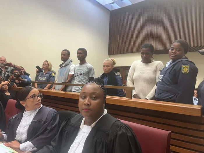 URacquel Chantel Smith nesoka lakhe uJacques Rowhan Appolis kanye nomngani weSteveno Van Rhyn bazogqunywa esitokisini kanti umsolwa wesine udedelwe ngemuva kokuhoxiswa kwamacala abekwe wona isithombe: NPA