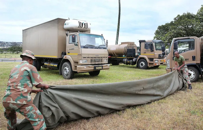 Amasosha eSANDF elungisa amatende awo Isithombe: Mlondolozi Mbolo
