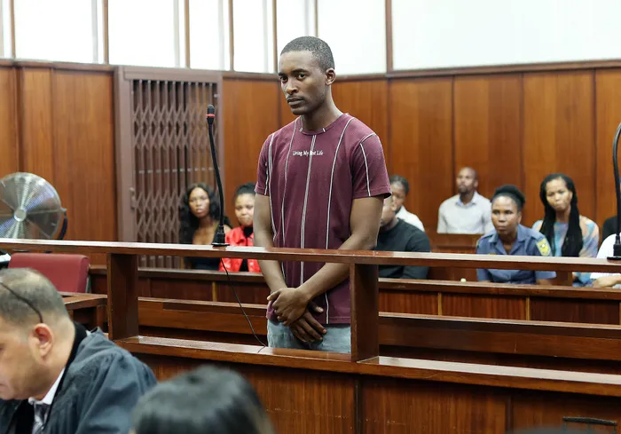 Umsolwa, uMnuz Sizwe Ngema (27) ubevele okokuqala enkantolo ngecala lokubhokoda ngommese uNksz Yolanda Biancha Khuzwayo (24) waze wafa eflethini lakhe (umsolwa) elisenkabeni yeTheku, ngeSonto.