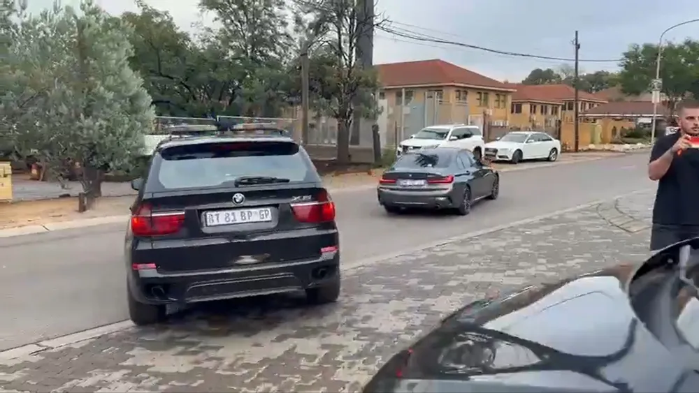IZIMOTO zamaphoyisa ebeziphelezela obengusomlomo wePhalamende uNosiviwe Mapisa-Nqakula eyozinikela emaphoyiseni isithombe: sicashunwe kwi-video