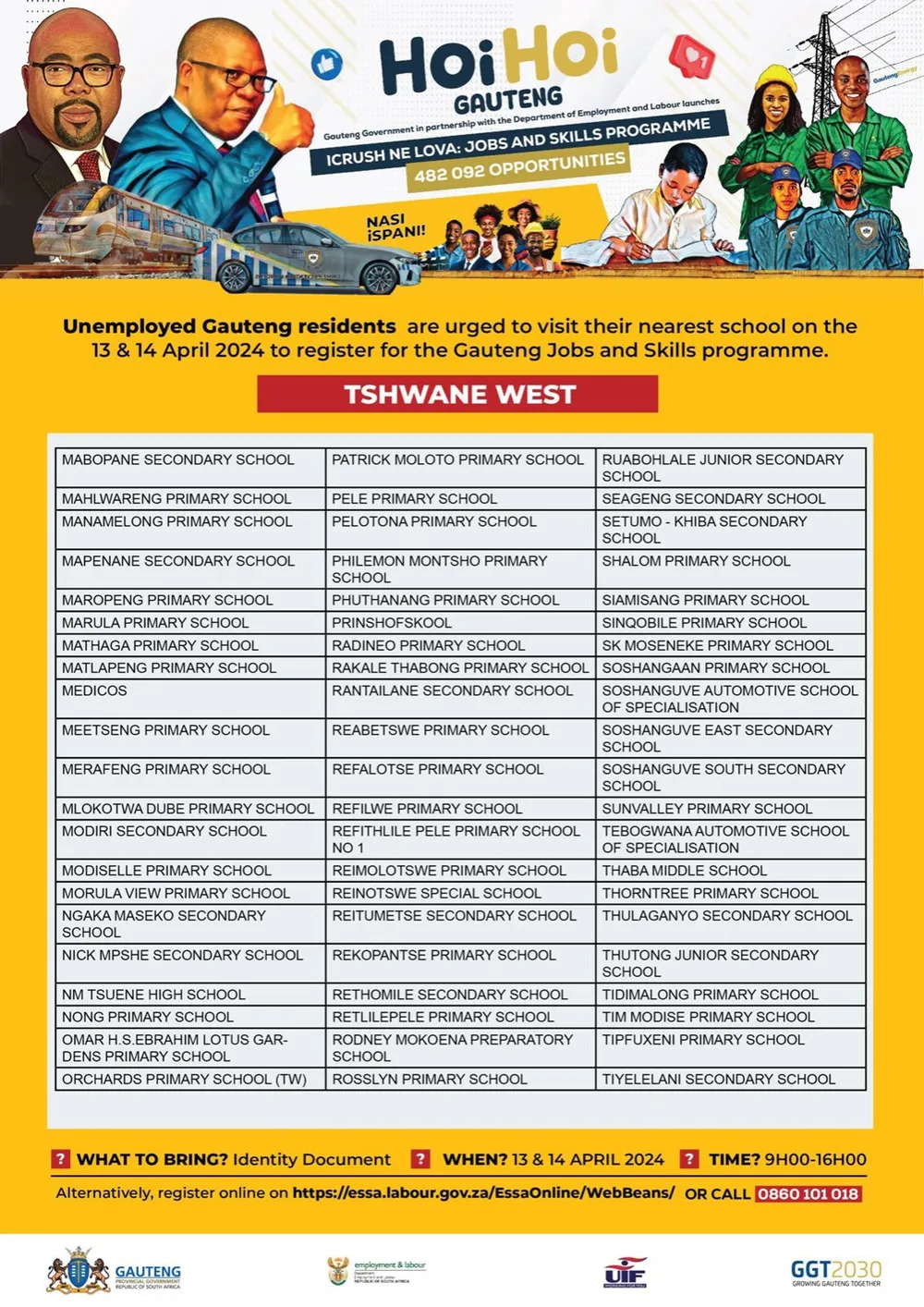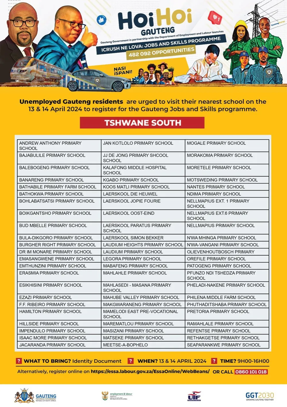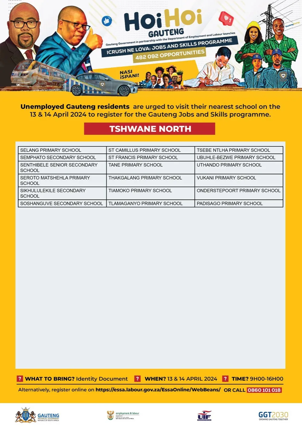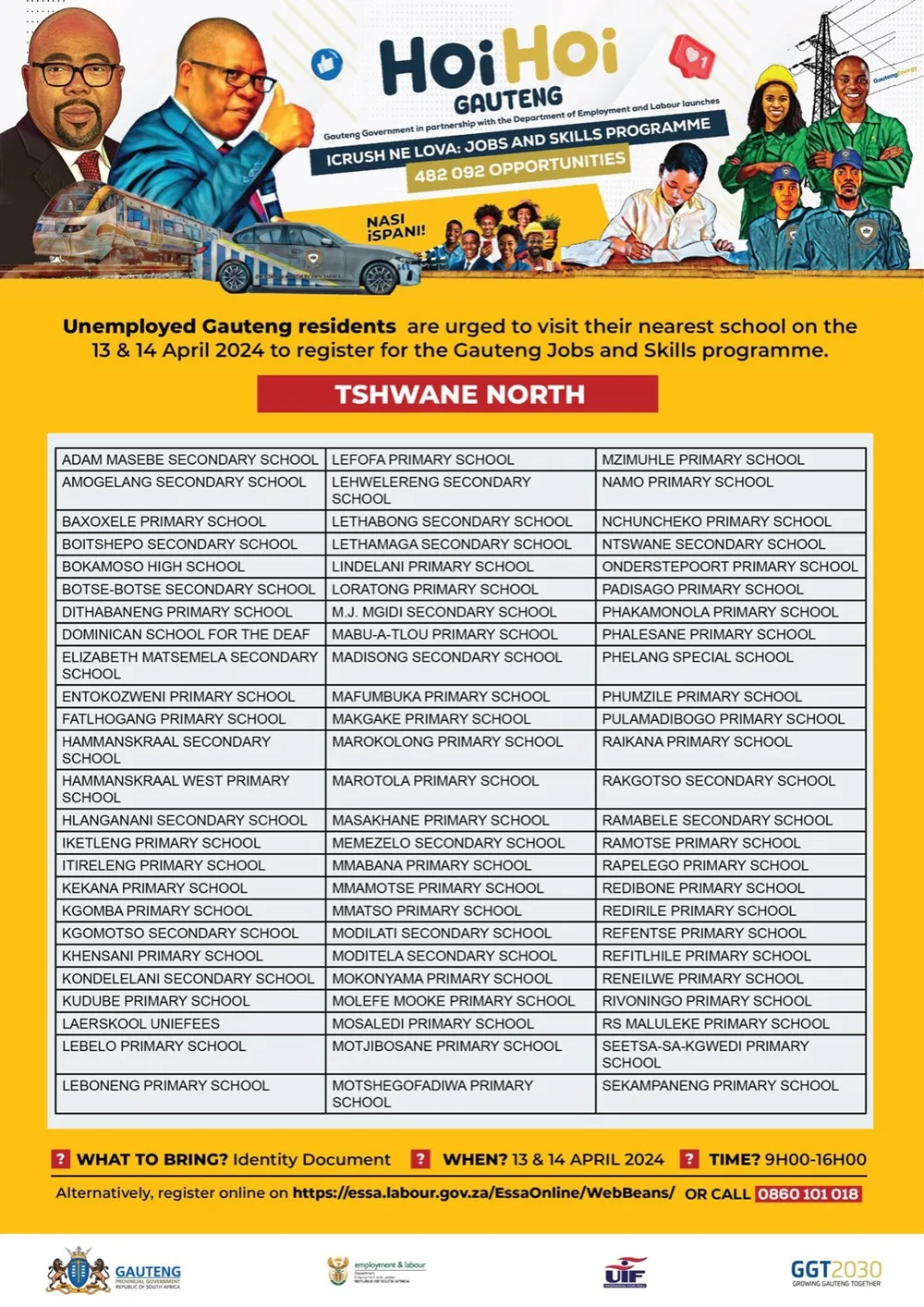 NgoLwesine ekuseni, uhulumeni saweGauteng ukhiphe isimemezelo sokuthi zonke izakhamuzi ezingasebenzi zinganikela ezikoleni ezehlukene ngokohlu olukhishiwe lapho bezobhalisela khona amathuba omsebenzi kanjalo namathuba okuqeqeshelwa amakhono ahlukahlukene ngale mpelasonto