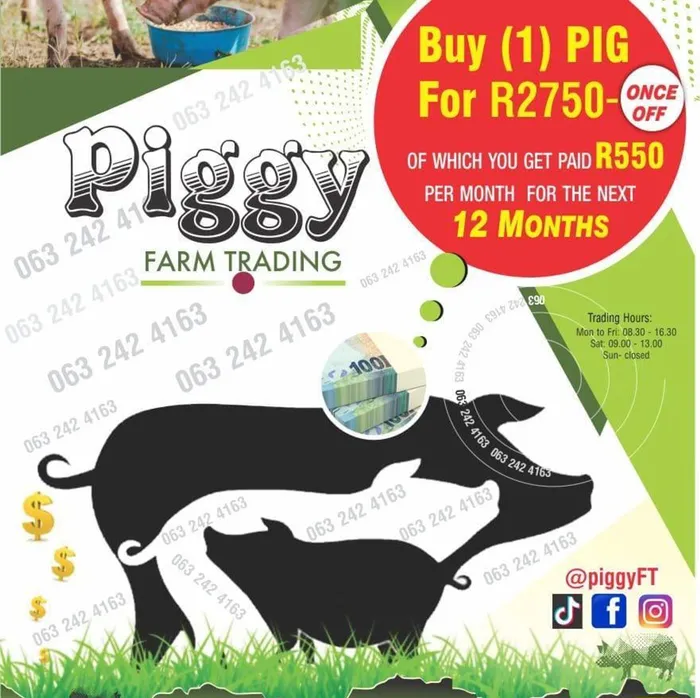Le nkampani ibiheha abantu ezinkundleni zokuxhumama ithi inepulazi okufuywe kulo izingulube. Abantu bebethenga ingulube eyodwa ngoR2 750 bese bethenjiswa ukuthi bazokhokhelwa uR500 njalo ngenyanga kuze kuphele unyaka. Lokhu kusho ukuthi umuntu ubezoba no-R6 000 uma sekuphela unyaka.