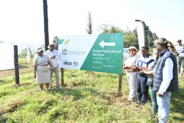 UMPHATHISWA wezoLimo KwaZulu-Natal, uMnuz Super Zuma kwesokudla noNdunankulu waKwaZulu-Natal, uNkk Nomusa Dube, bevakashele inkampani yentsha ezuze uxhaso kwi-Agribusiness Development Agency (ADA)ISITHOMBE: SITHUNYELWE