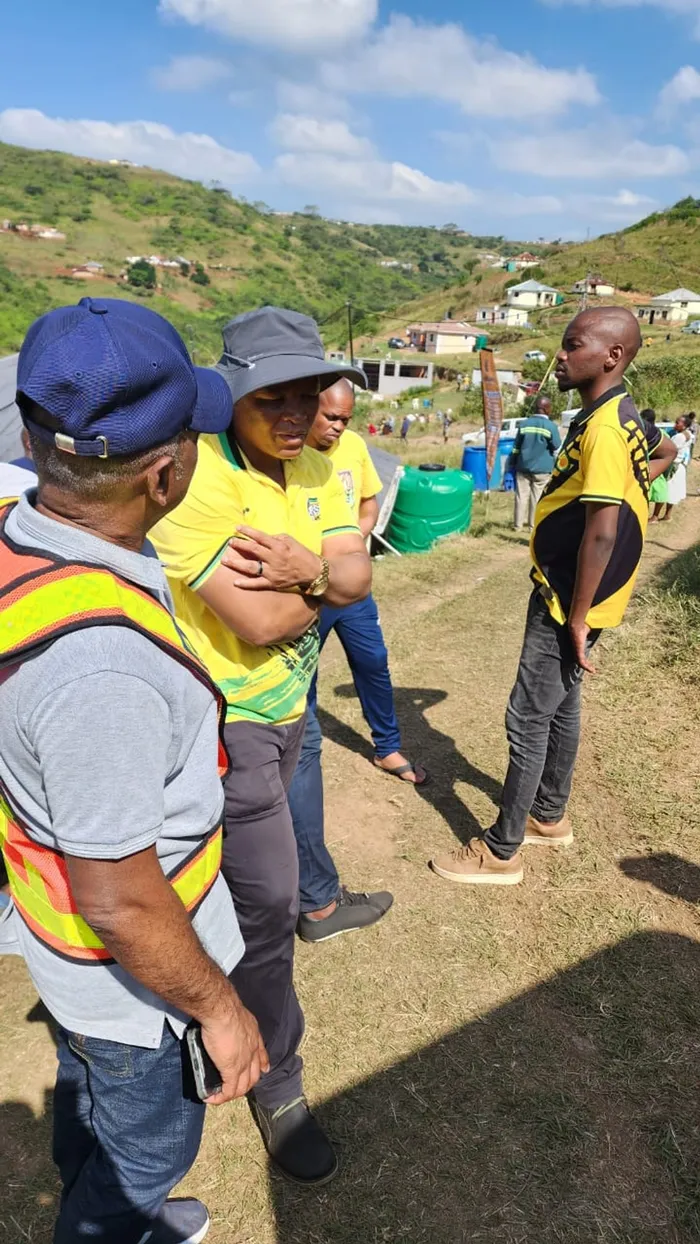 IMeya yaseNdwedwe, uMnuz Sam Mfeka (ogqoke isigqoko esi-navy) ngesikhathi ehambele indawo yesigameko lapho okubulawe khona abaneIsithombe: SITHUNYELWE
