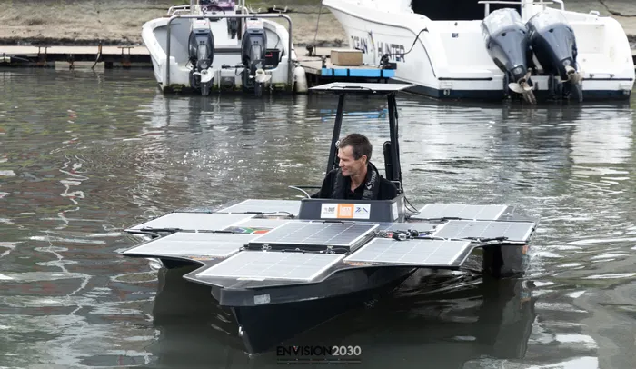 IDUT yethule isikebhe esisebenza ngelanga, esizoncintisana nezinye eMonaco. Esithombeni nguMnuz Steve Ellis othathwe eshayela lesi sikebhe Isithombe:DUT